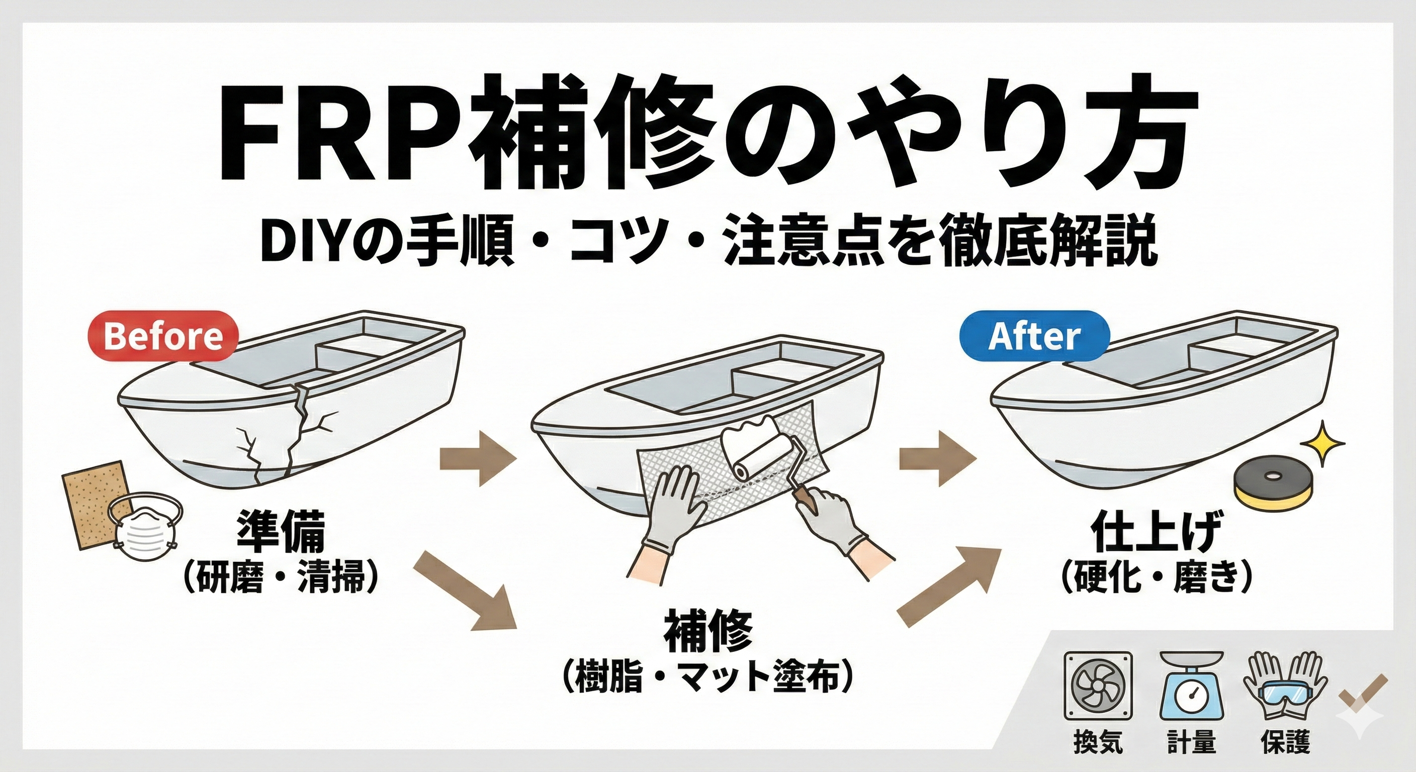 FRP補修のやり方とは?DIYの手順や失敗しないためのコツ・注意点を徹底解説