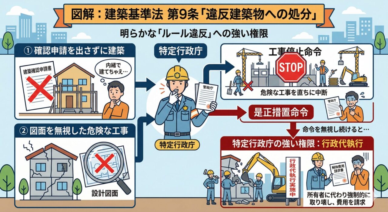 【建築基準法第9条・第9条の4】違反建築物への「是正命令」・「除却」とは?罰則と例外を解説!