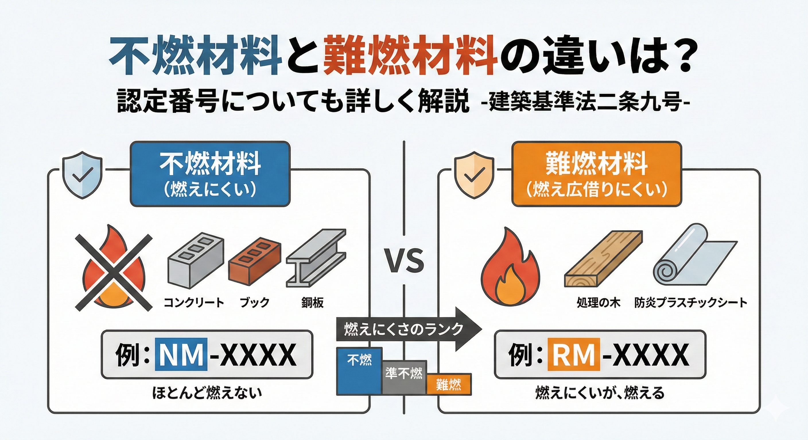 不燃材料と難燃材料の違いは?認定番号についても詳しく解説-建築基準法二条九号-