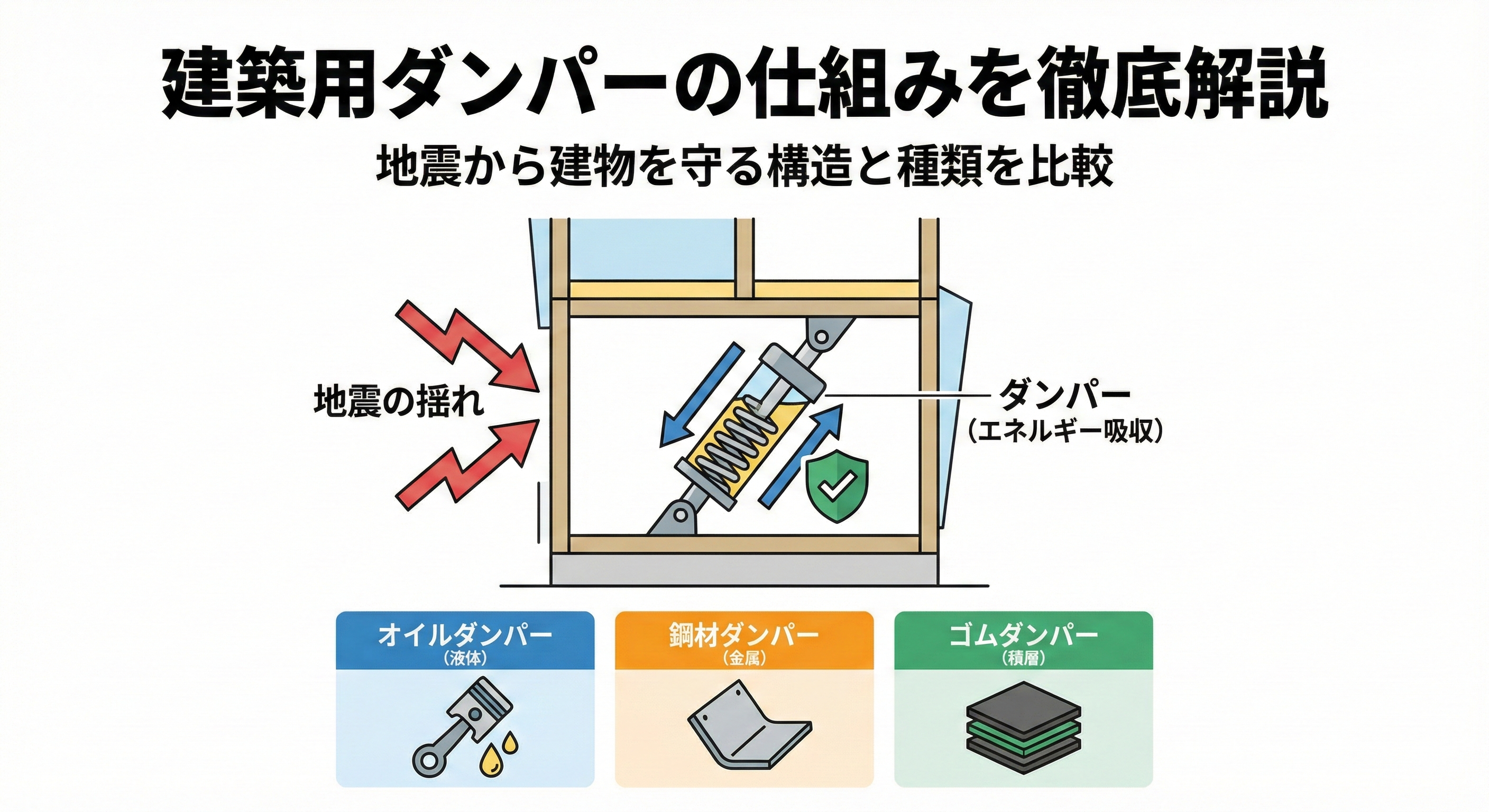はじめに 「地震大国といわれる日本で、安心して暮らせる建物とは何か」。建築物の安全性を考える上で、欠かせないキーワードとなっているのが 「制震(制振)」 です。そして、その中核を担うものが 「ダンパー」 です。 ダンパーは、地震のエネルギーを... 未分類