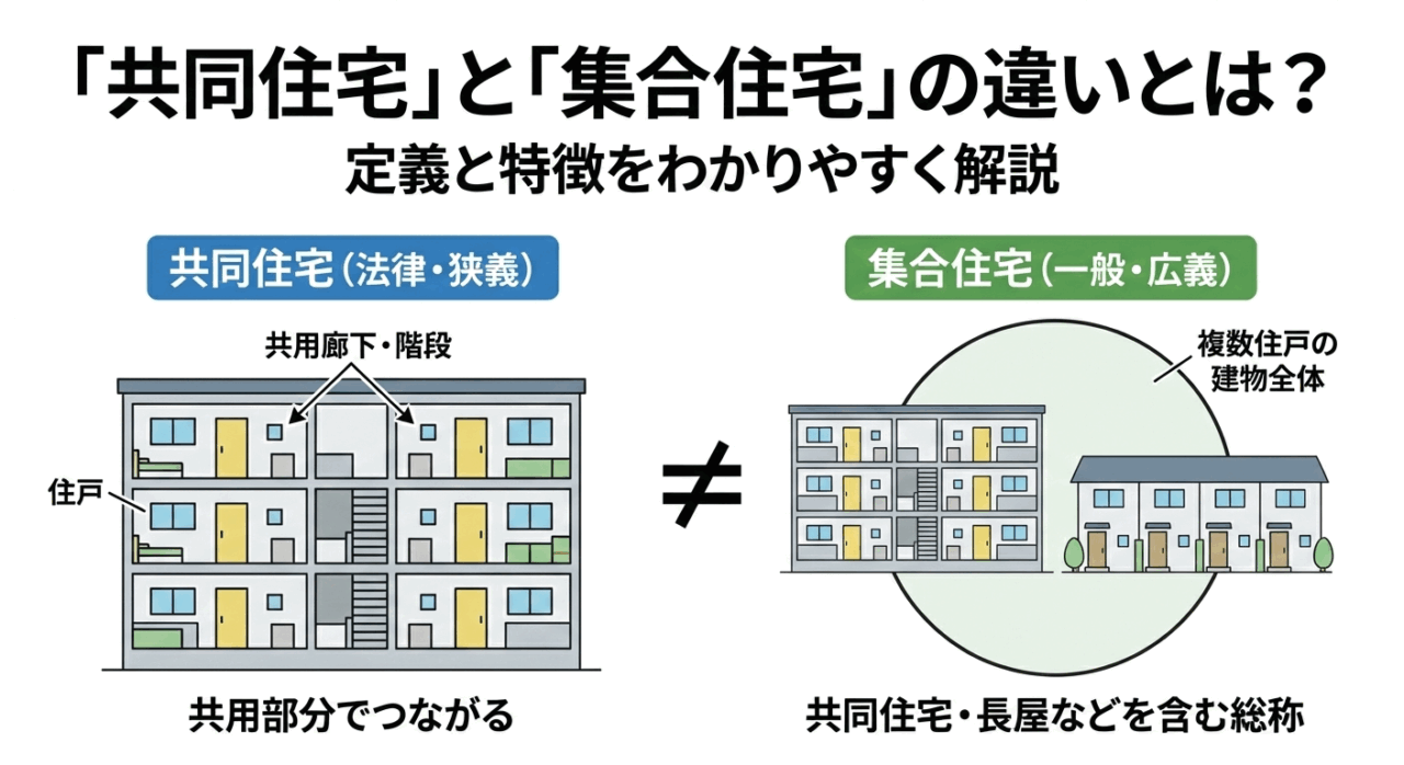 共同住宅と集合住宅の違いとは?定義と特徴をわかりやすく解説