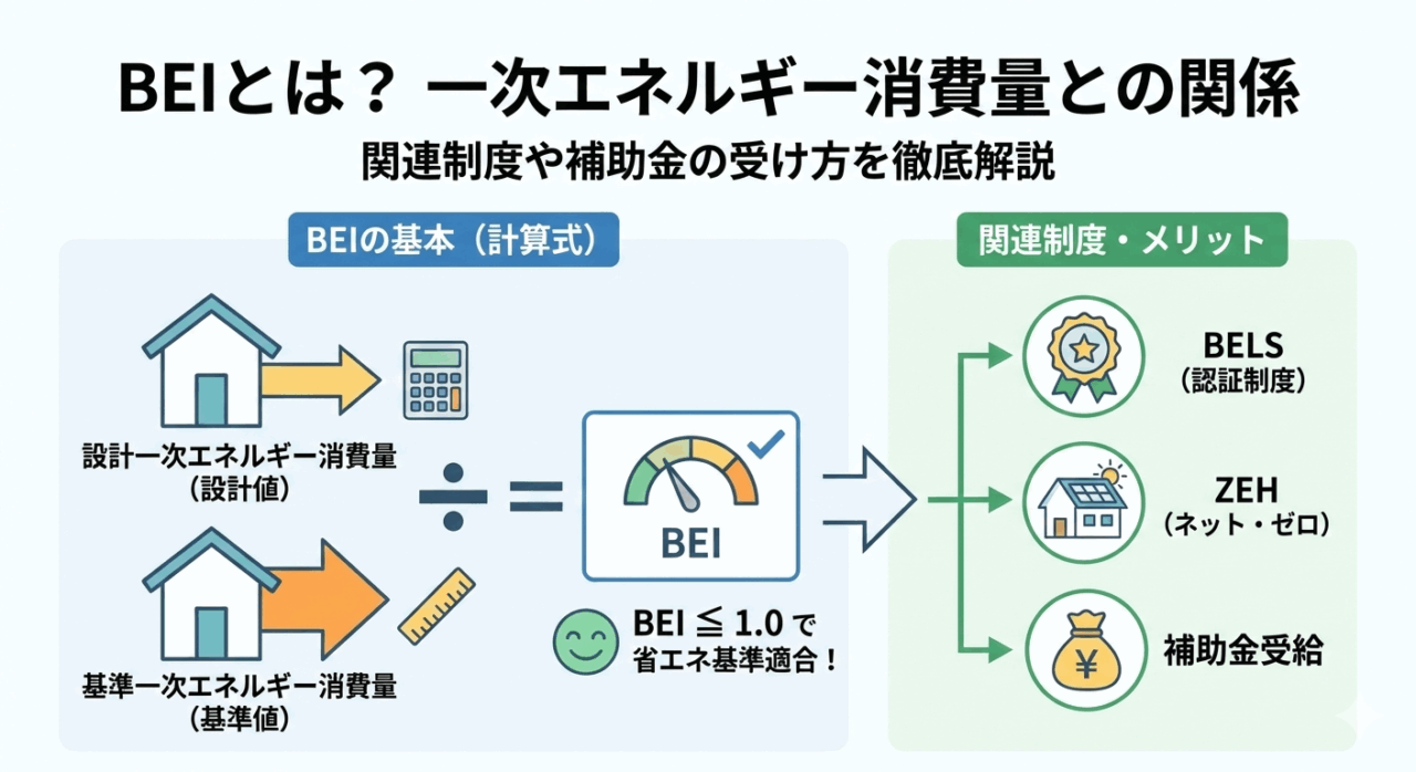🔵 はじめに 建築物における省エネルギー性能は、地球温暖化防止やエネルギーの安定供給確保といった国の政策目標を達成する上で、ますます重要になっています。特に住宅や非住宅の設計・建設において、その省エネ性能を客観的に示す指標としてBEI(Buildin... -