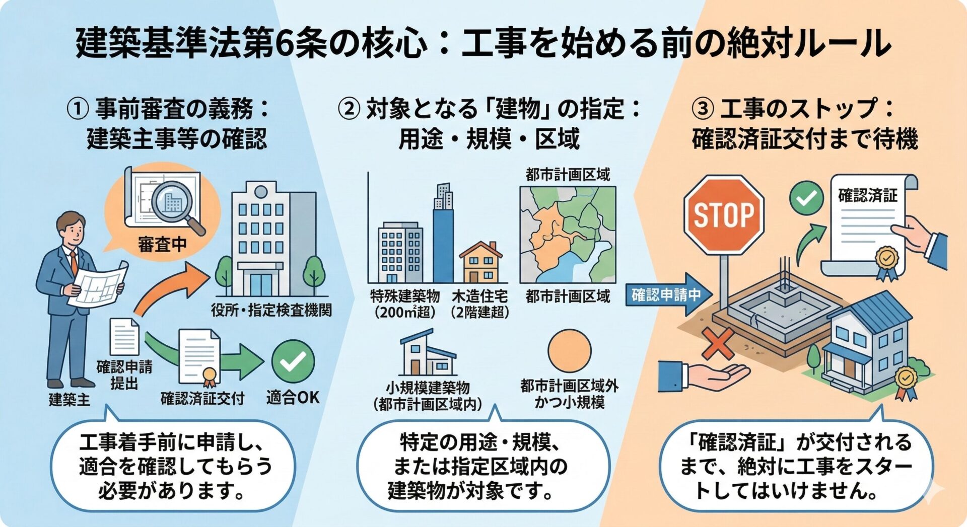 建築基準法第6条は、日本の建物の「適法性」を担保するための第一関門です。