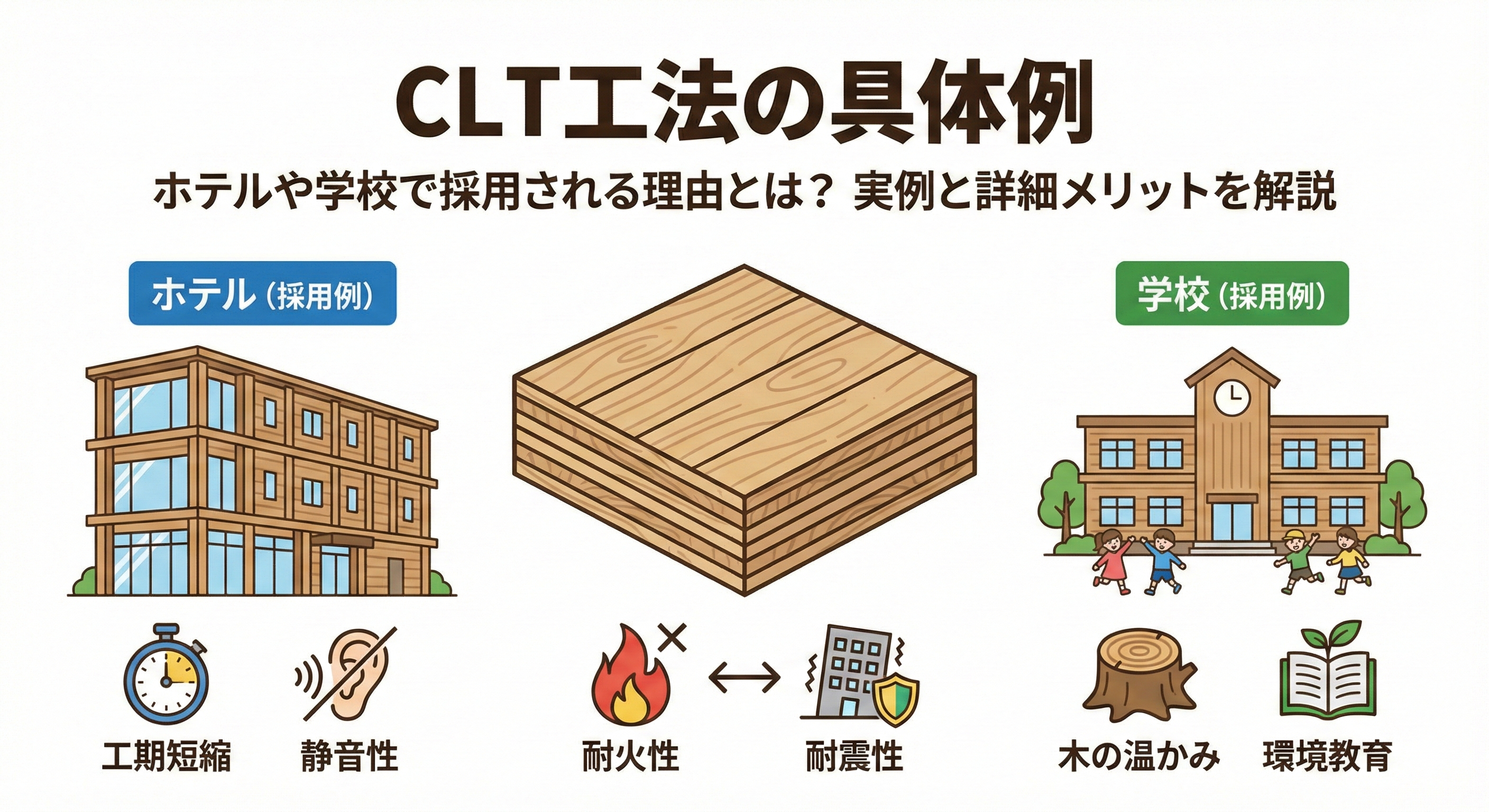 【CLT工法の具体例】ホテルや学校で採用される理由とは?実例と詳細メリットを解説