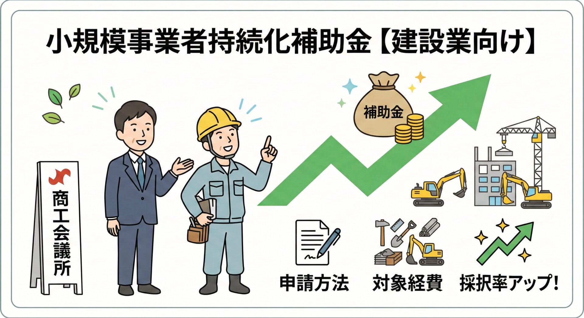 小規模事業者持続化補助金は、販路開拓に使える国の補助制度です。商工会議所の支援を受けつつ、対象経費や申請方法を押さえれば建設業でも活用できます。